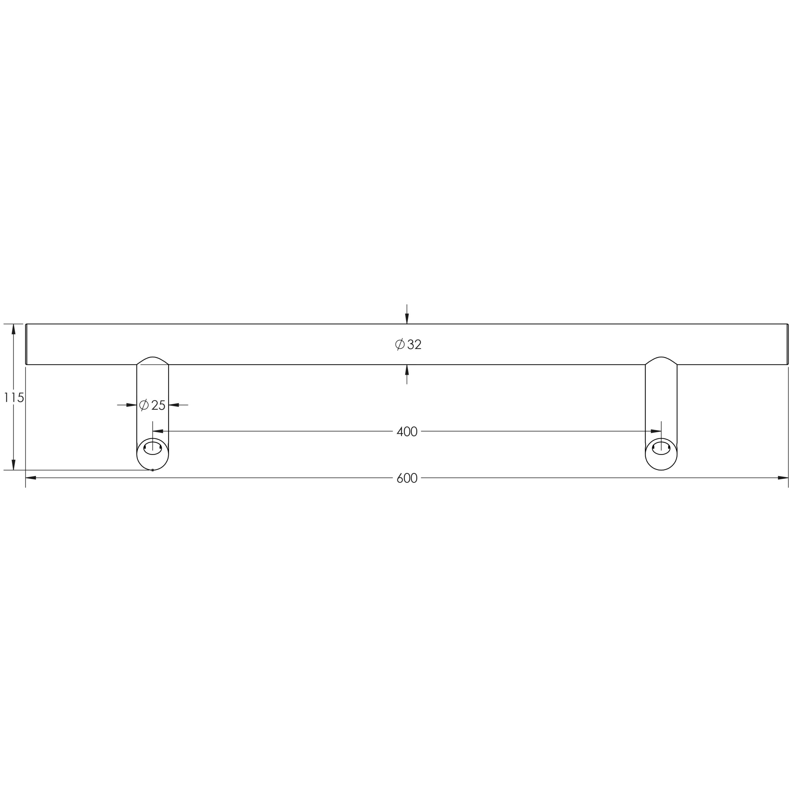 The Frelan JSS519A cranked pull handle features a robust Ø32mm tubular design with 400mm centres and a 600mm overall length. Its cranked fixing ensures extra clearance from the door surface, enhancing accessibility. Made from Grade 304 stainless steel with FD30/60 fire rating, it is built for demanding commercial use.